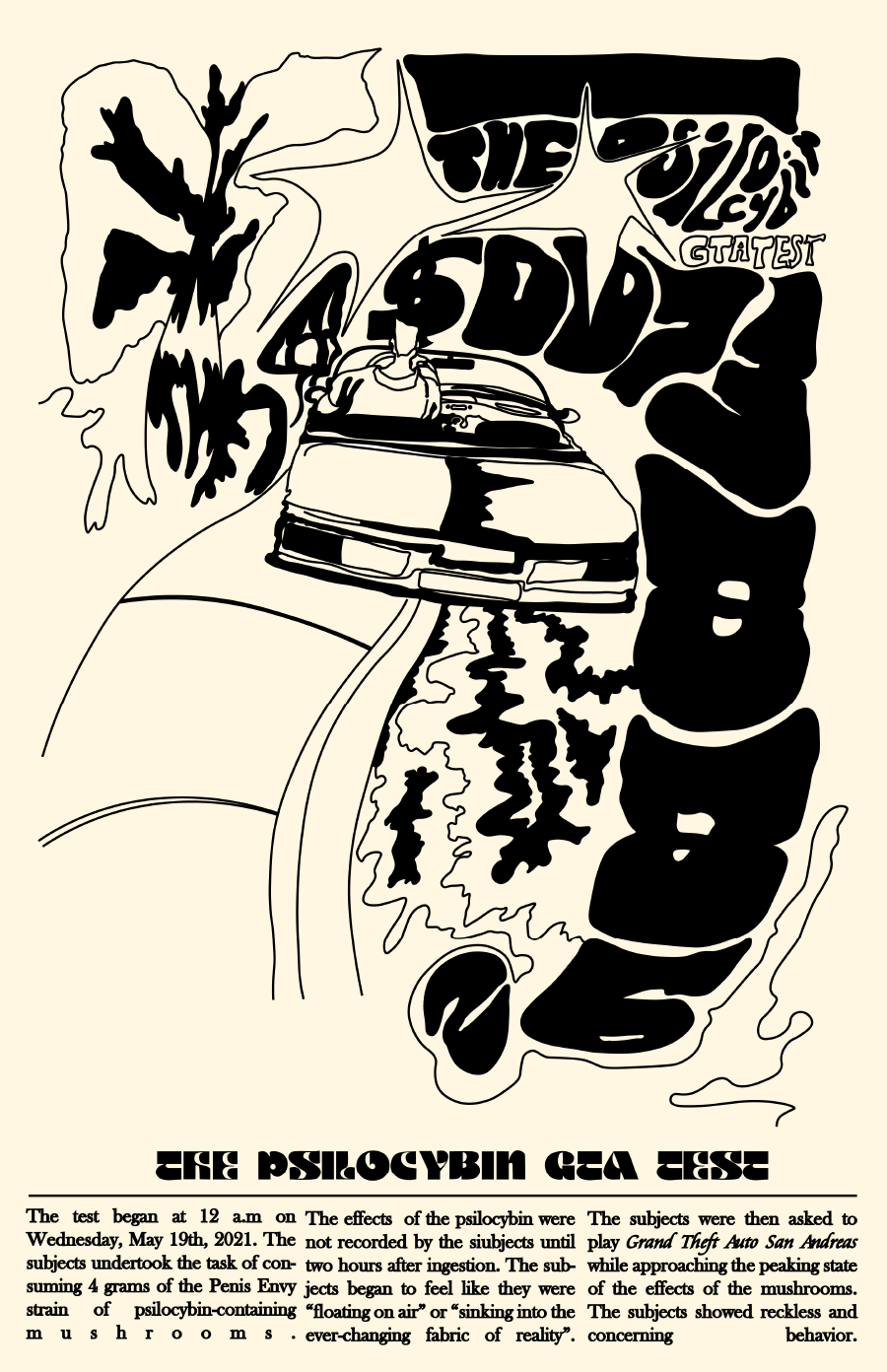 I made a series of poster graphics inspired by psychedelia and experimental typography. I drew much of my inspiration from sixties rock concerts and the rise of hip-hop culture in New York. I chose motivational quotes recommended to me by one of my mentors to keep my work positive.