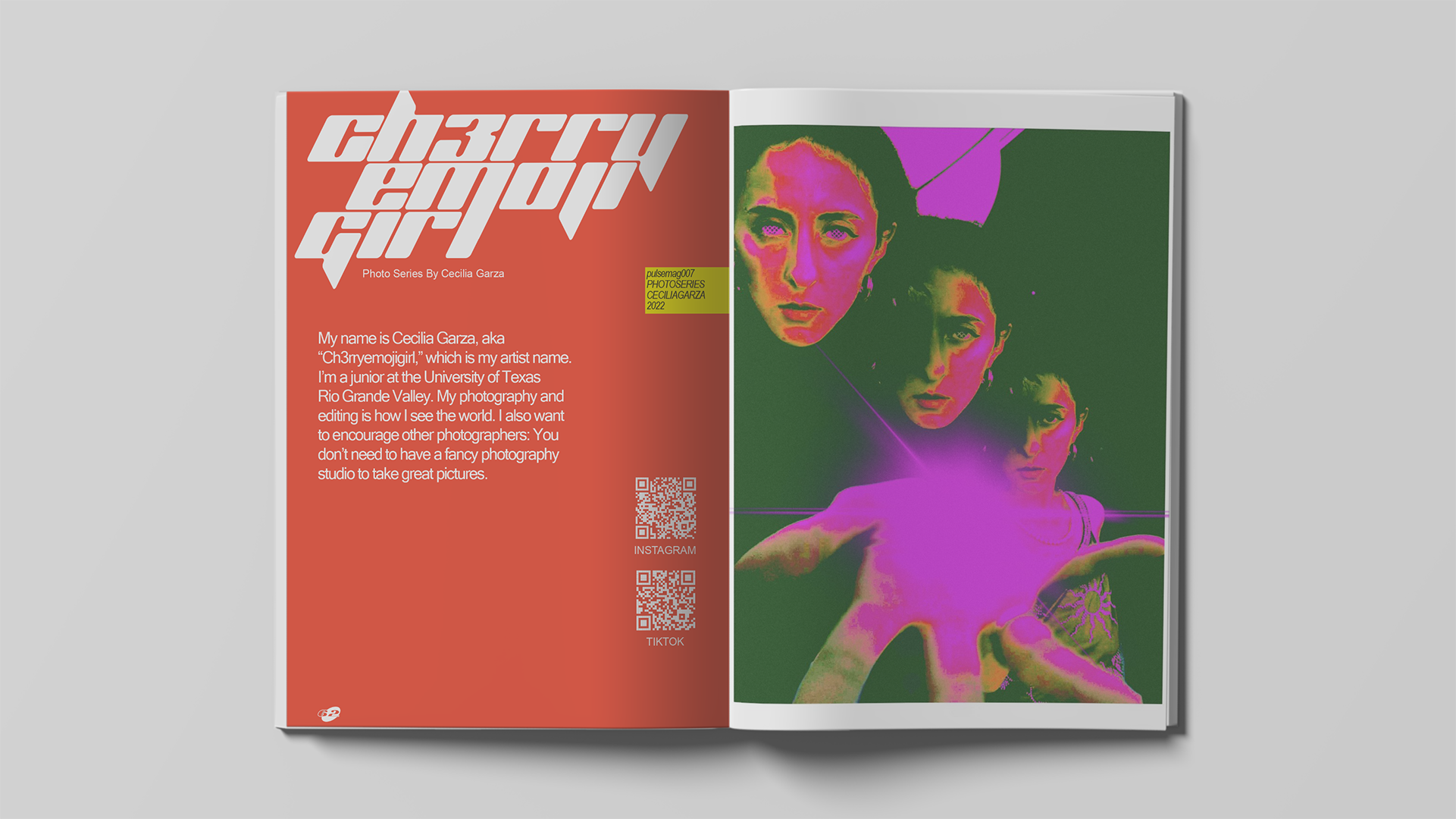 PULSEĀ MAGAZINEĀ is the student body magazine of the University of Texas Rio Grande valley, in Edinburg, Hidalgo County. i was hired as the Graphics Editor for the seventh issue of the magazine's launch at the University Liberal Arts building. The design team decided to take on a Y2K theme and printed stories of current events and local artists in the Rio Grande Valley. This magazine issue reached over twenty-thousand students across both campuses.